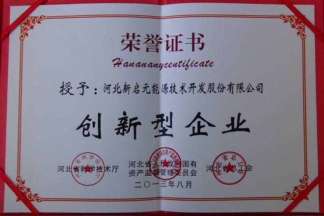 2013年5月公司收到河北省科技廳印發(fā)的《關(guān)于開(kāi)展河北省創(chuàng)新型企業(yè)評(píng)審工作的通知》,技術(shù)工程部根據(jù)通知要求組織相關(guān)材料申報(bào)創(chuàng)新型企業(yè),于6月上報(bào)到滄州市科技局,初審?fù)ㄟ^(guò)后,7月公司副總經(jīng)理劉海軍、技術(shù)工程部經(jīng)理王政、科員王亞君在石家莊參加答辯,并順利通過(guò)獲得河北省創(chuàng)新型企業(yè)榮譽(yù)稱號(hào)。
