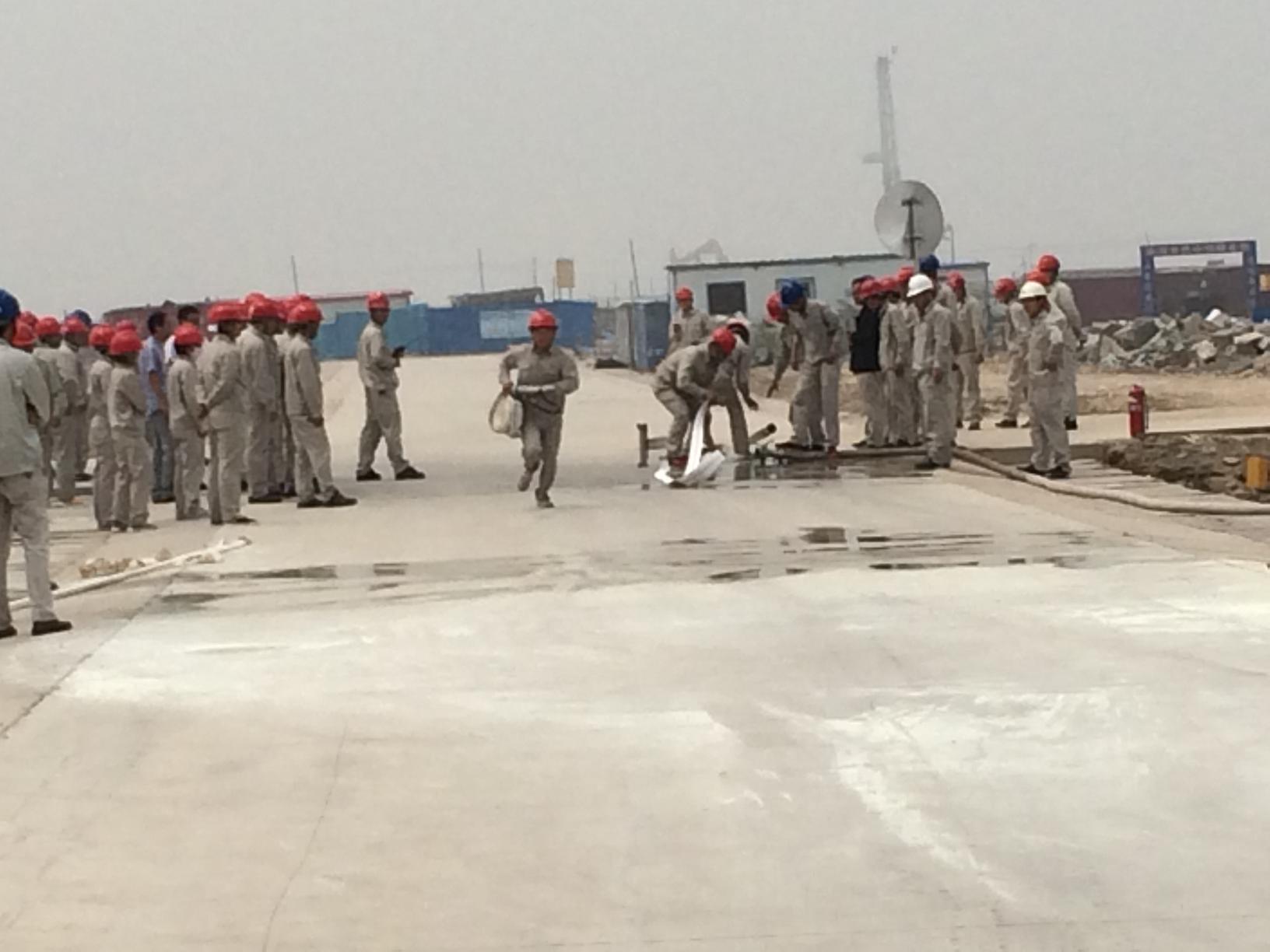 比賽共設(shè)三個(gè)項(xiàng)目:滅火器使用比賽、消防水帶使用比賽、空氣呼吸器及防化服穿戴比賽。健康安全環(huán)保部經(jīng)理孫長(zhǎng)輝任總指揮,公司副總經(jīng)理劉立新現(xiàn)場(chǎng)指導(dǎo),中捷安監(jiān)局科長(zhǎng)宋魁作為嘉賓也來到了現(xiàn)場(chǎng)。