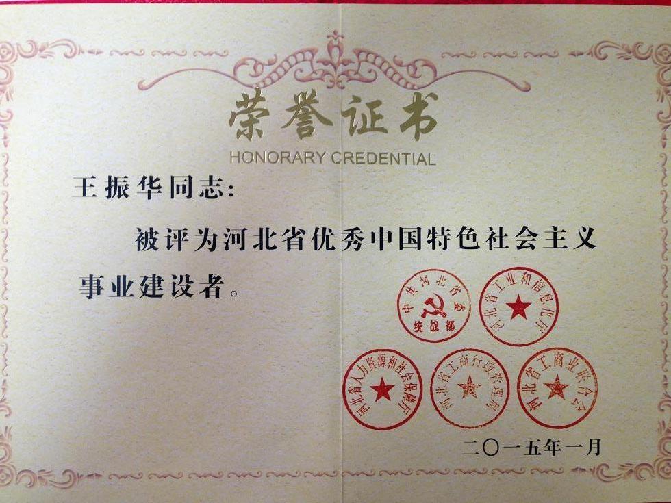 1月4日,第五屆河北省優(yōu)秀中國特色社會主義事業(yè)建設(shè)者表彰大會在石家莊召開,包括集團(tuán)公司董事長王振華同志在內(nèi)的48名非公有制經(jīng)濟(jì)人士和其他社會階層人士獲得了“優(yōu)秀中國特色社會主義事業(yè)建設(shè)者”榮譽稱號。