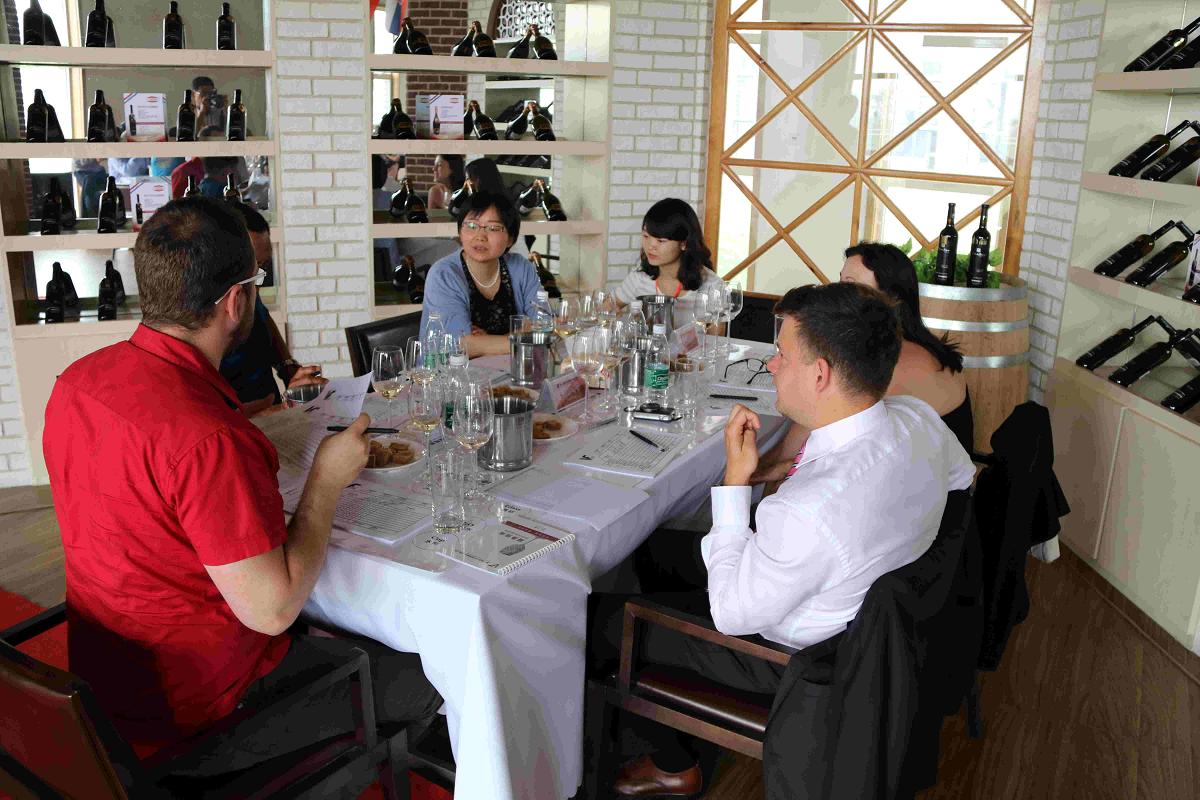 隨后主持人宣布葡萄酒品鑒正式開始,來自多個國家的15位專業(yè)品酒師分組對參賽葡萄酒進行專業(yè)的、科學的品鑒,同時進行認真的打分。