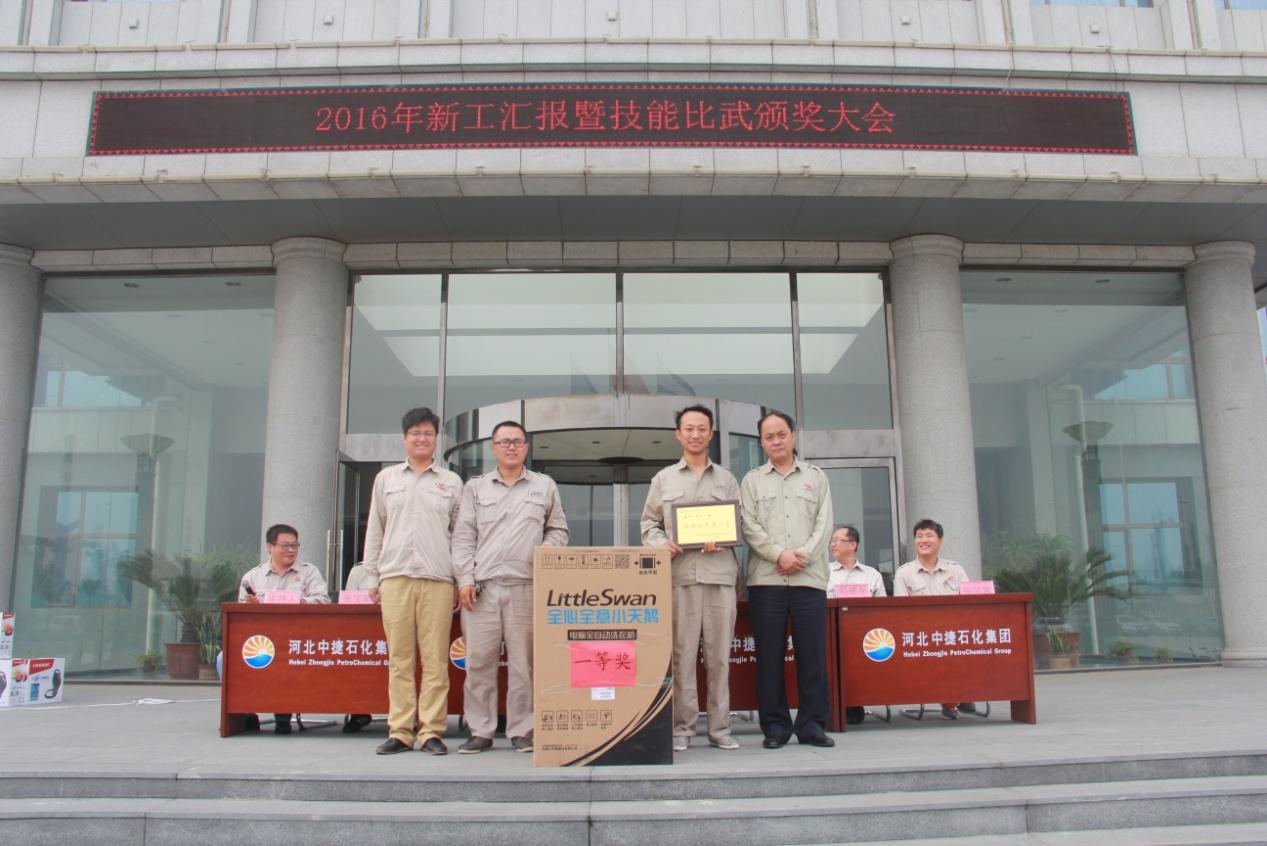 匯報結束后,公司領導為技能比武獲獎團隊頒獎,并提出了新的要求。綜合管理部經(jīng)理李樹祥代表技能竟比組委會向大會作小結匯報。技能比武活動共分四項綜合比賽,參加人員涵蓋運行部門全體管理人員、優(yōu)秀班長及操作工共計150余人。活動以安全生產(chǎn)實操為綱命題,通過竟比考核顯現(xiàn)了日常管理及技術掌握的不足,也彰顯了增加的創(chuàng)新性視頻培訓所帶來的實用高效性,為今后提高技能培訓開創(chuàng)了新方法。