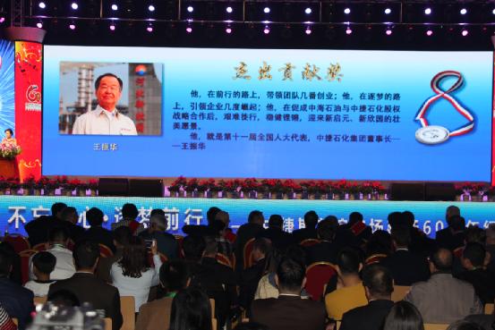 2016年10月15日晚,中捷友誼農場建場60周年紀念表彰大會在青少年文化中心隆重舉行。會上,中捷產業(yè)園區(qū)黨委書記、管委會主任、中捷斯友誼農場場長呂振華宣讀了《關于表彰建場60周年獲獎人物的決定》,一共有38人受到表彰。中捷石化集團董事長王振華榮獲“杰出貢獻者”稱號并接受表彰。