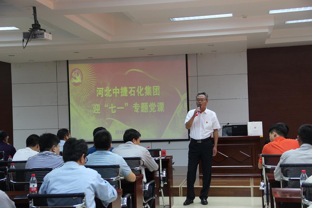 6月29日下午,河北中捷石化集團(tuán)黨委在科研樓六樓會(huì)議室舉辦迎“七一”專題黨課學(xué)習(xí)活動(dòng),集團(tuán)總經(jīng)理于國臣,黨委副書記朱振江,集團(tuán)各黨支部書記、黨員及積極分子代表共計(jì)80余人參加。此次黨課學(xué)習(xí)特邀中捷產(chǎn)業(yè)園區(qū)宣傳部副部長劉金林主講。