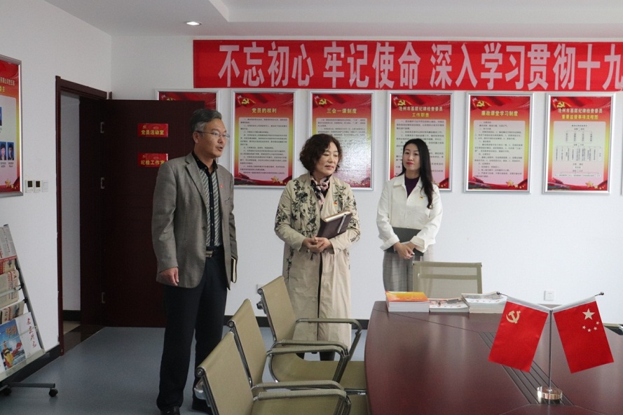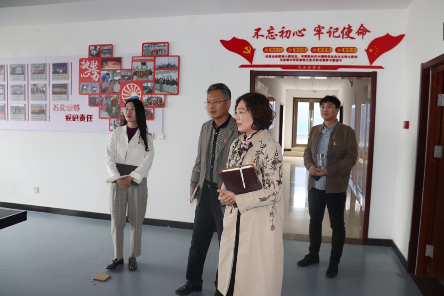 王玉芬書記一行首先視察了黨建活動陣地,查看了集團黨委黨建文化墻、黨員活動室、圖書室等黨建板塊,對集團黨委黨建硬件設施給予了高度評價,同時對黨建陣地的優(yōu)化升級提出了指導性意見。