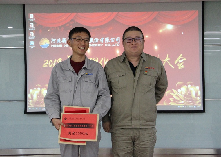 11月4日,新欣園公司2019年合理化建議及創(chuàng)新先鋒個(gè)人表彰大會(huì)在中控室第二會(huì)議室隆重召開(kāi),會(huì)議對(duì)2019年通過(guò)驗(yàn)收的31項(xiàng)優(yōu)秀合理化建議及2名創(chuàng)新先鋒個(gè)人進(jìn)行了獎(jiǎng)勵(lì)表彰。公司總經(jīng)理王政、副總經(jīng)理李冬峰、副總經(jīng)理劉廣杰、黨支部書(shū)記馮國(guó)衛(wèi)及干部職工代表共60人參加了會(huì)議。