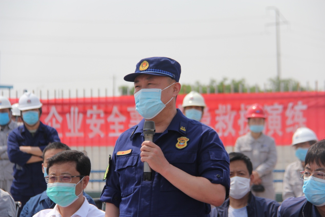 王偉支隊(duì)長對(duì)此次演練進(jìn)行點(diǎn)評(píng)。他指出:此次應(yīng)急演練非常具有針對(duì)性,各參演單位精心組織、周密安排、密切配合,達(dá)到了預(yù)期效果。此次演練是深入貫徹落實(shí)習(xí)近平總書記對(duì)安全生產(chǎn)工作的重要指示精神,促進(jìn)了政府消防隊(duì)伍與企業(yè)消防隊(duì)伍之間協(xié)同作戰(zhàn)能力及水平的大幅提升。今后,我們要把功夫下在平時(shí),提升救援隊(duì)伍的精神面貌,強(qiáng)化應(yīng)急救援專業(yè)訓(xùn)練,針對(duì)突發(fā)事件應(yīng)急救援工作面臨的新形勢(shì)、新情況,崗位練兵和聯(lián)合實(shí)戰(zhàn)要相結(jié)合,做到磨練隊(duì)伍、總結(jié)經(jīng)驗(yàn)、提升能力,一旦發(fā)生事故,確保能夠快速響應(yīng),科學(xué)救援,將人員傷亡和財(cái)產(chǎn)損失降到最小。同時(shí)針對(duì)演練中暴露出的問題要認(rèn)真總結(jié),加以改進(jìn),確保演練效果真正落到實(shí)處。