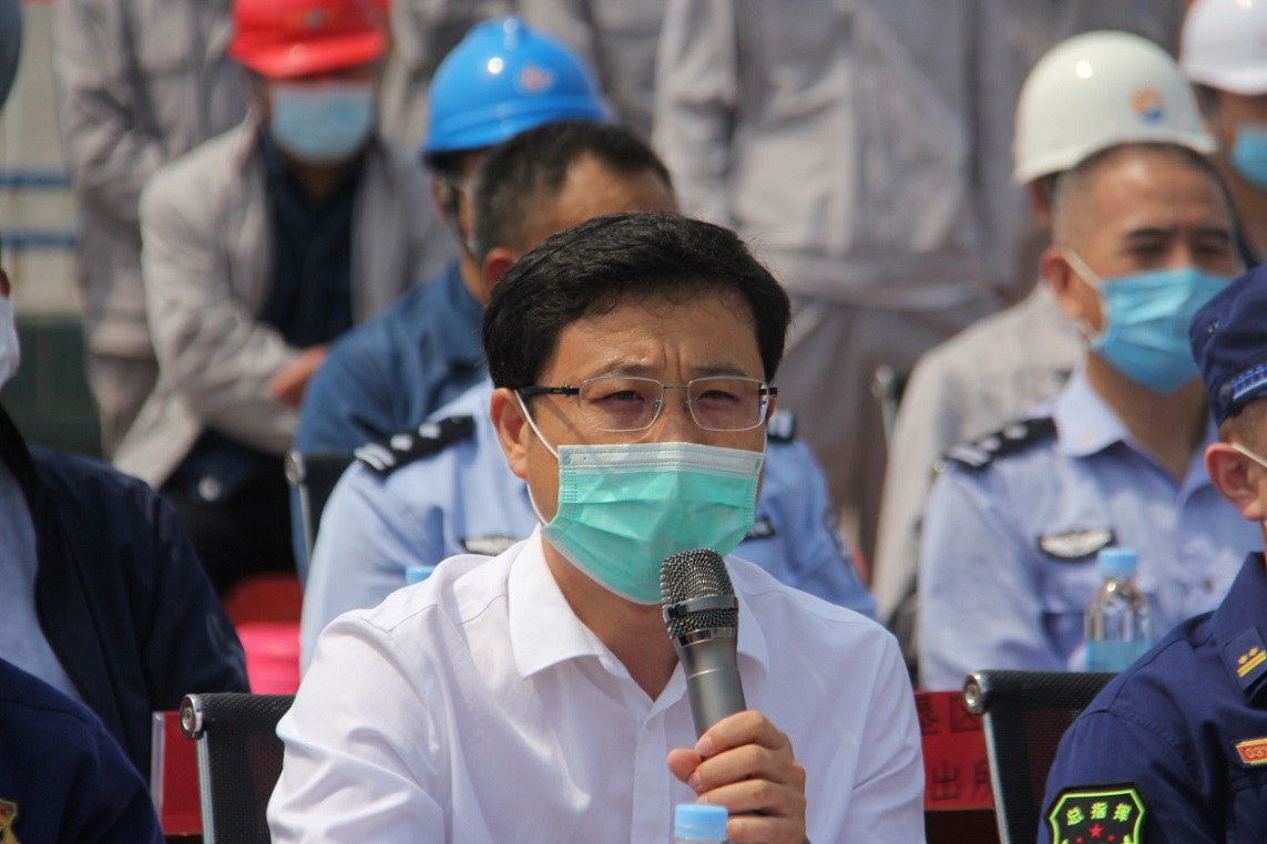 園區(qū)管委會(huì)副主任田永彬同志作重要講話。他指出:石化產(chǎn)業(yè)是我區(qū)經(jīng)濟(jì)產(chǎn)業(yè)的重頭戲,也是我區(qū)安全生產(chǎn)監(jiān)管的重中之重,做好石化園區(qū)應(yīng)急救援工作,降低生產(chǎn)安全事故風(fēng)險(xiǎn)是我們工作的首要任務(wù)。同時(shí),全國“兩會(huì)”召開在即,加上新冠疫情防控常態(tài)化,在此敏感時(shí)期各部門各企業(yè)一定要強(qiáng)化政治意識(shí),時(shí)刻繃緊安全生產(chǎn)這根弦,要把事故應(yīng)急預(yù)案和演練緊密結(jié)合,牢牢抓在手上,通過不斷演練,提高應(yīng)急能力,打造“拉得出、沖得上、打得贏”的保障隊(duì)伍,確保我區(qū)安全生產(chǎn)形勢(shì)持續(xù)穩(wěn)定,為全區(qū)企業(yè)生產(chǎn)及人民幸福安康保駕護(hù)航。